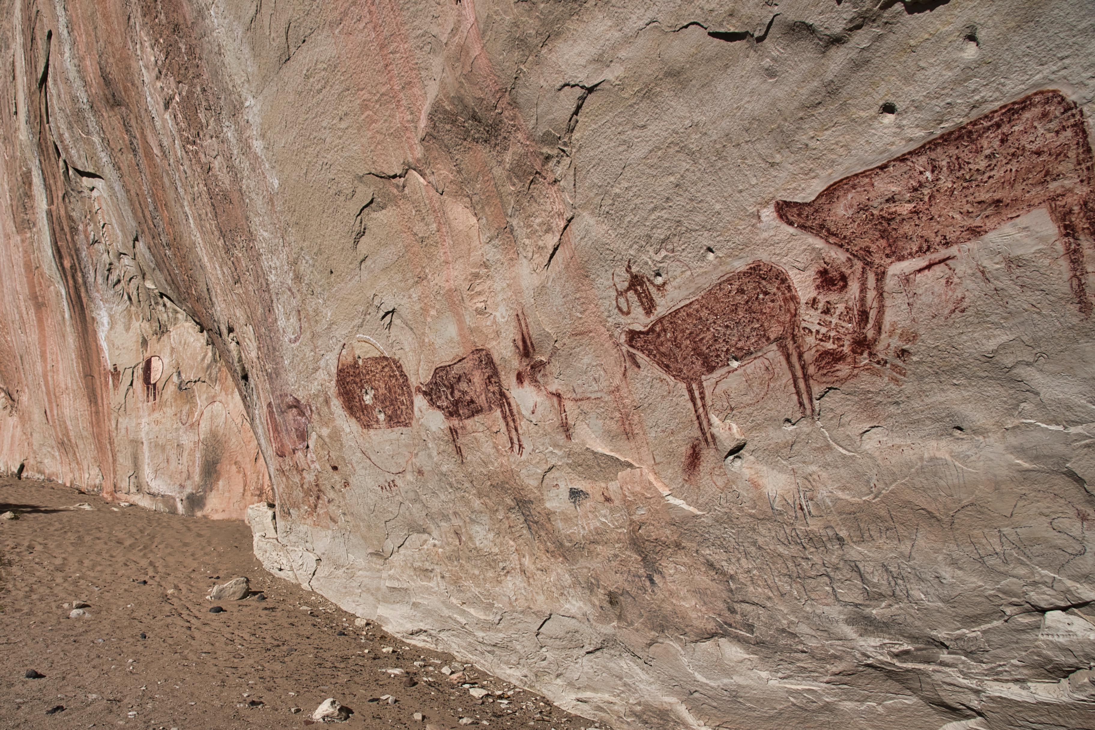 Vance, of The Flute Shop, gave us directions to some ancient petroglyphs that were painted on a rock wall quite close to where we were staying.