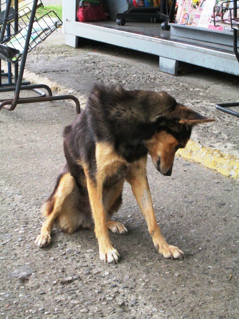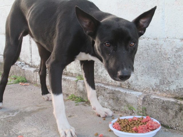 The boy is relatively safe where he is. He has shelter, and doesn’t appear to be in any mood to move on, which is good. If he stays put we can help. Finding a home for him is not easy, but after we can find some place as a temporary shelter we’ll get him into the vet, neutered, treated for whatever, then settled. The huge problem is, there simply aren’t any shelters we can just take him to, so we can’t get him off the street and into the vet immediately. Every shelter is over-full, and that makes rescues just that much harder. It’s not the case of simply finding a dog (or cat) and getting them to safety… which is heartbreaking. You just have to hope they stay put. A few times I’ve put a dog in the car and taken them from danger (like near a main road) and brought them up to our area where there are parks and plenty of shelter and people to help. It’s a safe place, and if they stay put we often have successes… But that takes time. But, as I said, he doesn’t seem to want to move on, and he’s starting to put on weight. He was desperately thin, but 500g of mince and a big bowl of dry food every day seems to be doing the trick.