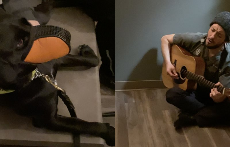 Dr. Noah understands that going to the vet can be overwhelming for some pets, so he does his best to create a positive experience for them the best way he knows how — through music.
