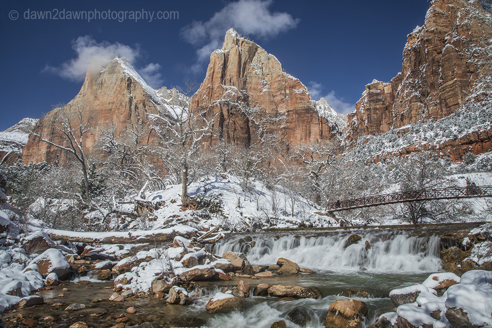 I think this is Zion National Park. The pillars above and the stream below.